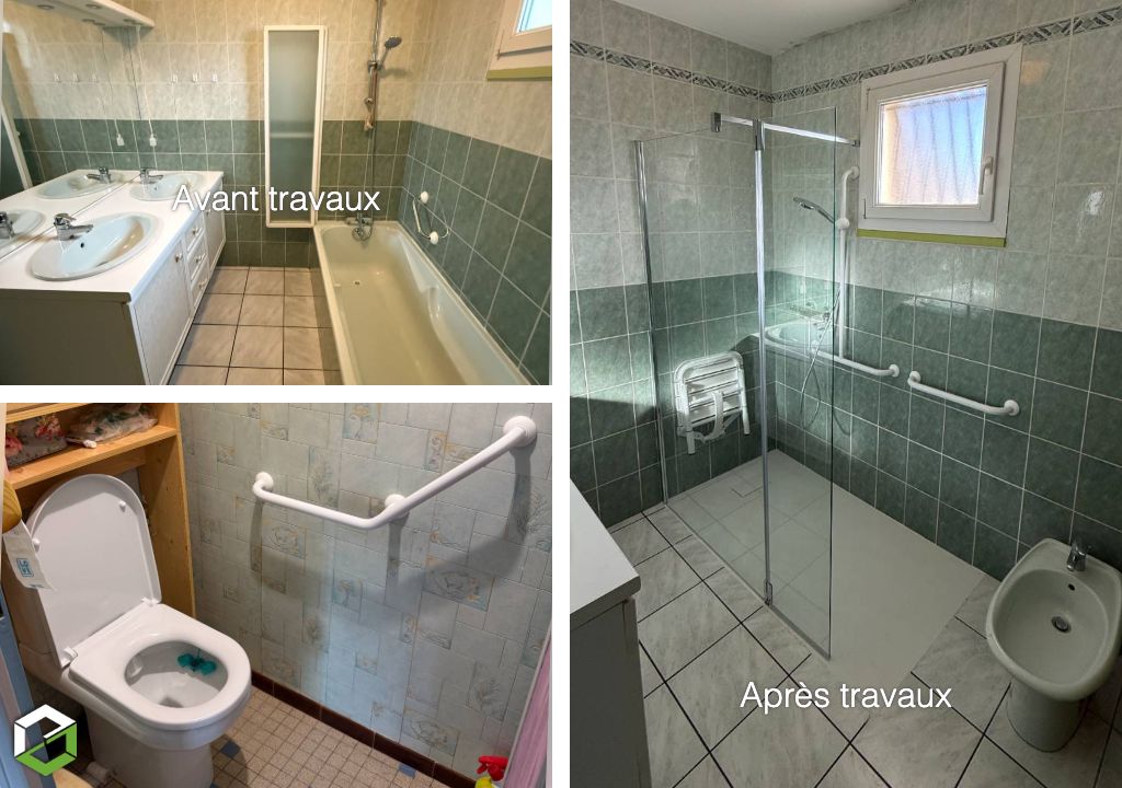 Dans le cadre d'un maintien à domicile et après étude d'un ergothérapeute nous intervenons chez notre client pour remplacer sa baignoire par une douche ainsi que le changement de son WC pour l'adapté à sa mobilité réduite.