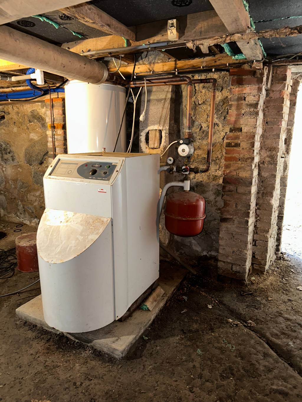 Nous avons donc procédé à la dépose de la chaudière fioul et de la cuve, désembouer l'installation de chauffage centrale par radiateur puis réalisé la nouvelle installation.
