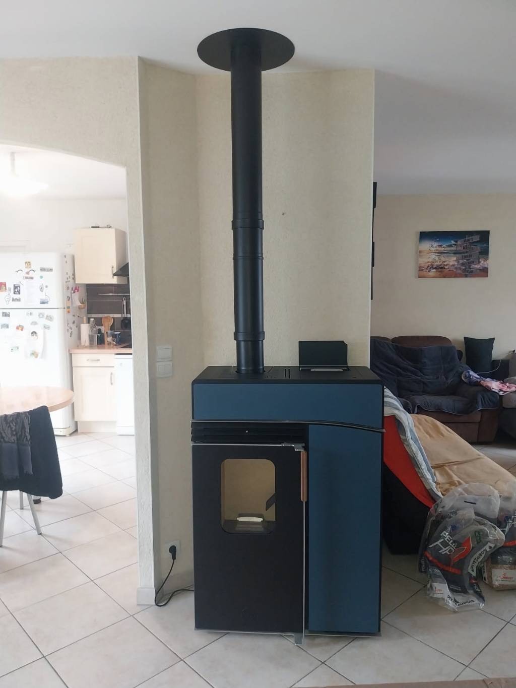En complément du mode de chauffage existant, pose d'un Poêle à Granulés en sortie ventouse.
